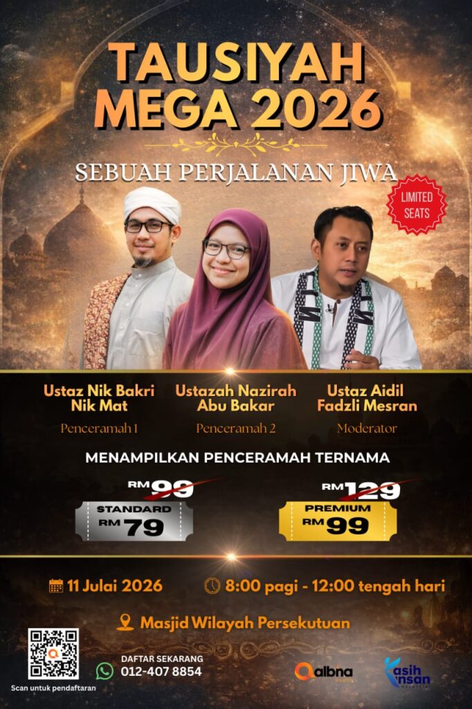 Qalbina Events menganjurkan majlis Tausiyah Mega: Sebuah Perjalanan sebagai sebuah ruang refleksi dan penyucian jiwa.
